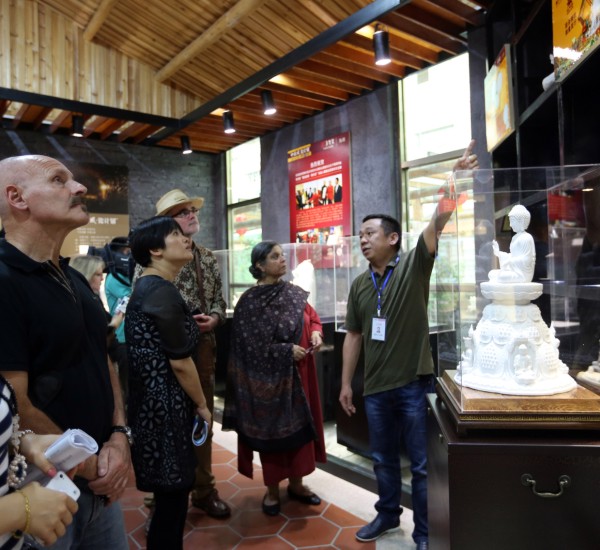 2015年5月29日,德化申報“世界陶瓷之都”復(fù)評工作進行中,世界手工藝?yán)硎聲跎街飨?、理事會亞太地區(qū)、拉丁美洲地區(qū)、北美地區(qū)有關(guān)負(fù)責(zé)人以及聯(lián)合國教科文組織特派代表等一行數(shù)人蒞臨多寶堂參觀采風(fēng)。